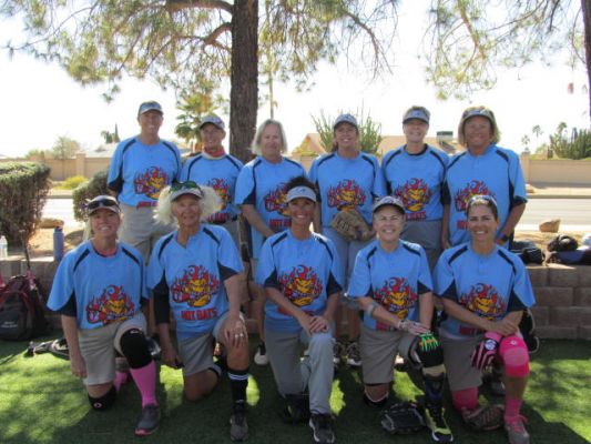 Our season opener was a good game against a very competitive Sun City West team. We were able to stay with them most of the game but not scoring in the final two innings did not help our cause. Everyone had at least 1 hit in their 3 at bats except for Kathy Boland, Arlene Weslowsky, and Yvonne Becker with two hits each. Lisa Pelletier had some great defensive plays to accompany her 3 hits and 3 RBIs. Kandi Patrick did a fine job pitching and batting (3 for 3) including the only triple for our team. Extra base hit honors also go to Arlene who smacked 2 doubles resulting in 2 runs scoring. Yvonne had an RBI and Becky Holliday drove in 2 more runs. We played good defense, including a great throw from Becky to catcher Judy Muller, which stopped the Hot Flashes' run from scoring. Speaking of flashes, thank you Lisa, Kathy, and Vikki Hanson for pinch running. Annie Lowe had her debut on the pitching mound and will continue to practice. It was a good experience for her, but at the same time she encourages others to think about sharing the position. Welcome to the team Kat Melton, Laura Johnson, and Marjo McDougal. So nice to have you join our gang! Special thanks to Coral Estes for coaching third base and to our softball friends; Buck, Norm, Mark, Roger, Mike, Marilyn, and Dave for their efforts and support of the women's team at Sun City Grand. Appreciation also to all of our fans in the stands! Next game is scheduled at SCW on December 14 at 2:30 pm. Practice will be on Friday Dec 13 @ noon. Please mark your calendars!!